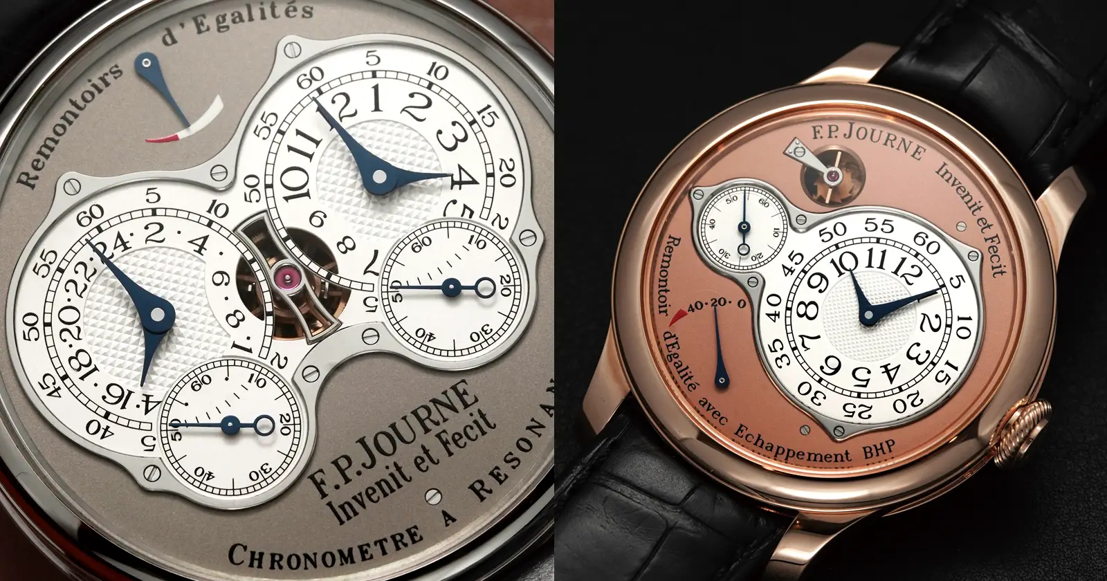 此表另一獨特之處是啟動三問的方式。一般是拉表殼側的拉桿,過程中順道為報時機制上鍊。此表則是按掣,操作起來會較容易,但按掣就沒有上鍊效能,打簧報時的動力跟腕表的走時一樣,是由發條鼓而來。你不斷按掣報時,動力就會被消耗,所以12:00位置的動力儲備顯示處有一個紅色小點,告訴你指針走到這裡,餘下動力不足12小時,腕表會沒力再打簧,這時你就要替腕表上鍊。我們都清楚三問表機械構造非常複雜和細緻,必須設下保護機制,此表亦不例外。腕表正在報時,表冠是無法拉出,同時上鍊系統也會跟發條鼓輪分離,這樣就不怕我們誤調損害機芯運作。不得不提的是,腕表打簧時,會刻意延遲數字轉換的工作,例如我們在1:00前3秒才按掣的話,它會相當醒目,待長達20秒的報時完畢後,才瞬間由12:59轉到1:00,為的就是讓我們所聽和所看永遠一致。遇上心和口一致的人,你會欣賞其率直可愛;如此內外一致的三問表,自然也值得欣賞。直徑44mm鉑金表殼的它,配手上鍊機芯,約售44萬歐元。