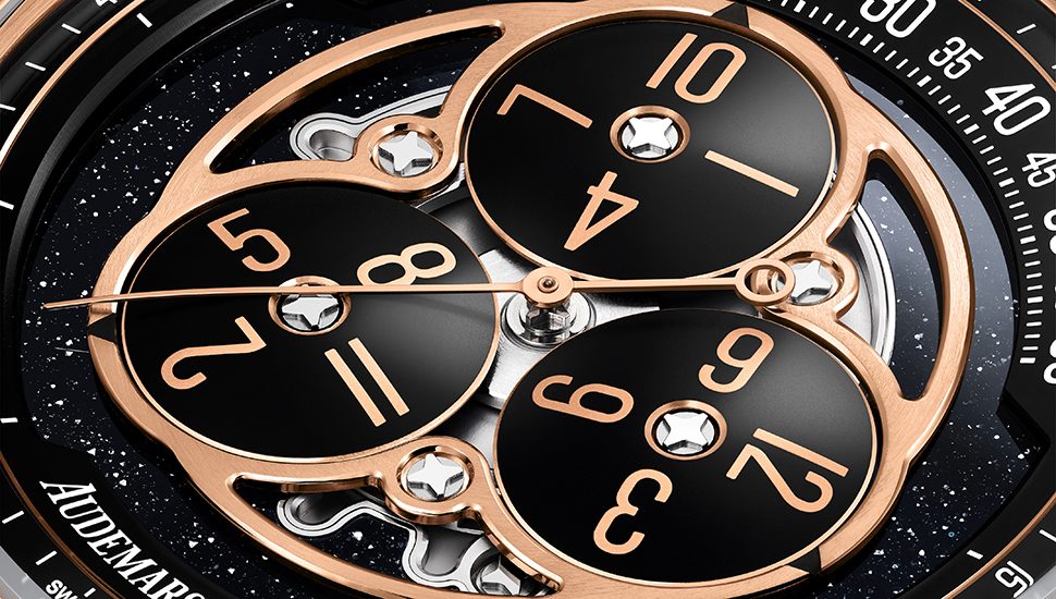 這次的心臟是Cal. 4310自動機芯,2022年隨愛彼Code 11.59系列首次亮相。它以Cal. 4309機芯為基礎,特別加入漫遊小時裝置(Wandering Hour)。先說一點歷史,「漫遊小時」早在17世紀出現,不是以時針指示,而是以活動視窗顯示,這顯示方式後來逐漸式微,至1989年,愛彼重新發掘這個特殊系列,並在1991年推出首枚漫遊小時腕表,因為其3個小時盤設皆設有星形螺絲故取名Starwheel星輪腕表,而這名字也沿用至今。
