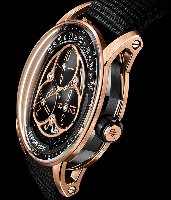 RD系列是品牌高端製表技術的代表,象徵著突破性的發展,自面世至今正好十年。RD#1樹立了全新的聲學標準,RD#2是超薄萬年曆,RD#3為超薄自動上鍊飛行陀飛輪,而RD#4則是超複雜款,結合了多達40項功能,包括報時、萬年曆與陀飛輪等。來到第五款作品,功能相對「簡單」了一些,僅有計時與陀飛輪,然而它卻是Royal Oak "Jumbo"系列首款結合飛返計時與飛行陀飛輪的腕表,其計時分鐘盤更採用瞬跳模式。
