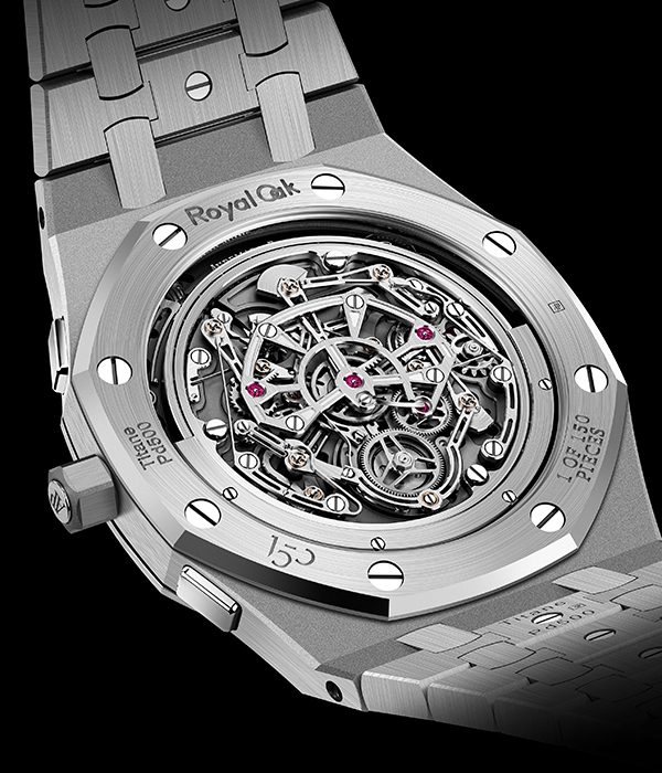 擺陀往往是減少機芯厚度的障礙,但愛彼研發出鉑金圈形外圍擺陀,不僅避免了機芯增厚,環形設計亦讓佩戴者能欣賞精緻細膩的機芯打磨工藝,包括手工斜面計時橋板、銳利內角與霧面處理。
