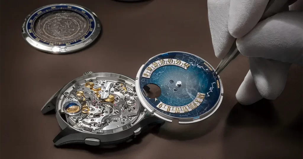 時間追溯至2005年,即江詩丹頓誕生250周年,當年品牌跟機械人偶大師François Junod合力研發了像蓮花盛開的L’Esprot des Cabinotiers隱秘式座鐘。20年後兩者再度攜手,不過今次再不局限於鐘表領域,一如établissage分工協作的製表傳統,江詩丹頓情商了製表大師、工藝大師、機械人偶大師(對了,今次亦是由François Junod操刀),以及最關鍵的日內瓦天文台天文學家組成製作團隊。在多位大師的努力下,花了7年時間創造出La Quête du Temps座鐘這台揉合天文顯示與機械人偶的曠世傑作。
