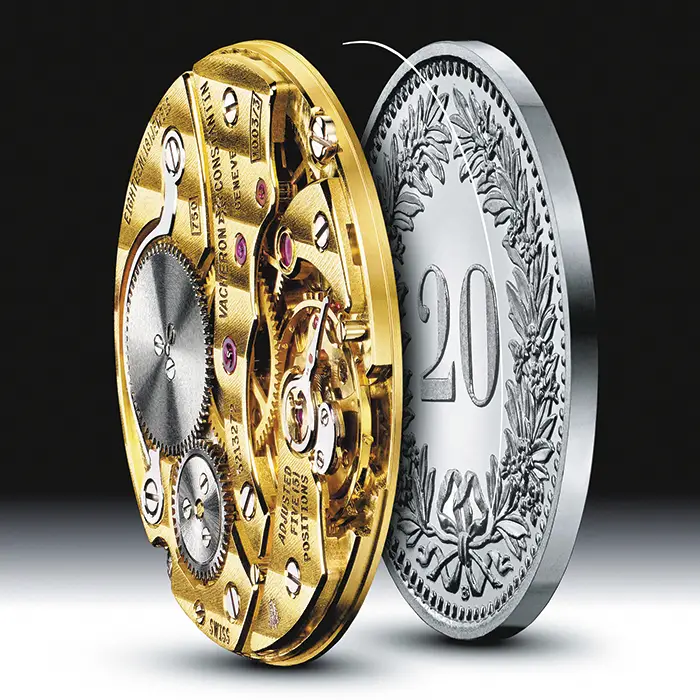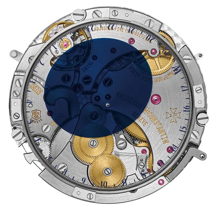 Ref. 30030三問鏤通表所搭載的1755機芯僅厚3.28mm,屬同類型機芯最薄的一款。