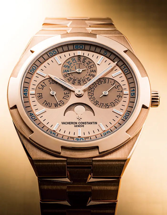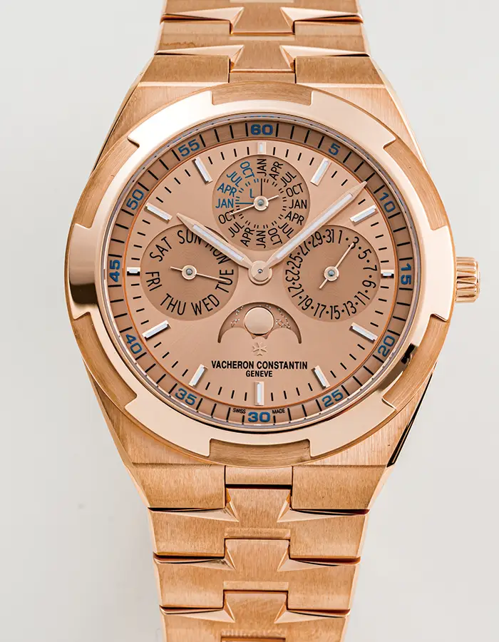 今代Overseas系列於2016年誕生,屬於系列旗艦、功能最複雜的超薄萬年曆款式於同年推出,面世9年來,整體設計大致上都沒有改變過,依然是以上下扁平的酒桶形表殼,搭配設有六個特大凹槽、一如馬耳他十字風格的圓形表圈,而表殼左右的線條與表帶呈一體式設計,呈現強悍而不失優雅的高級運動表氣質。