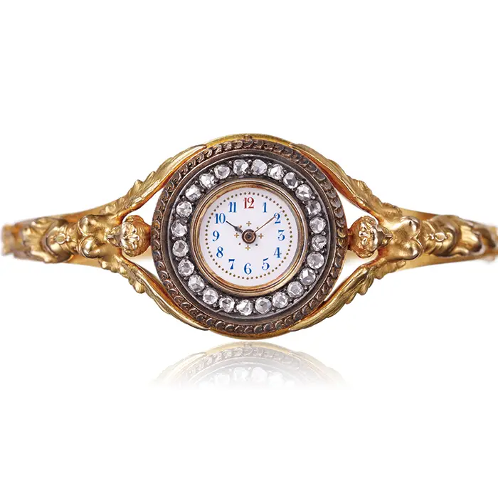 鏈帶上雕刻有展翼女神的這款女裝表,是江詩丹頓最早量產的其中一款腕表,為了保持腕表平衡美觀而不設表冠,靠轉動表圈來設定時間。
