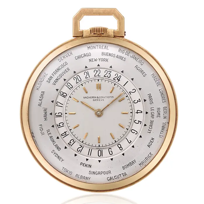 與製表大師Louis Cottier合作推出首款搭載「Cottier系統」的Ref. 3372世界時間袋表,可顯示多達31個時區時間。