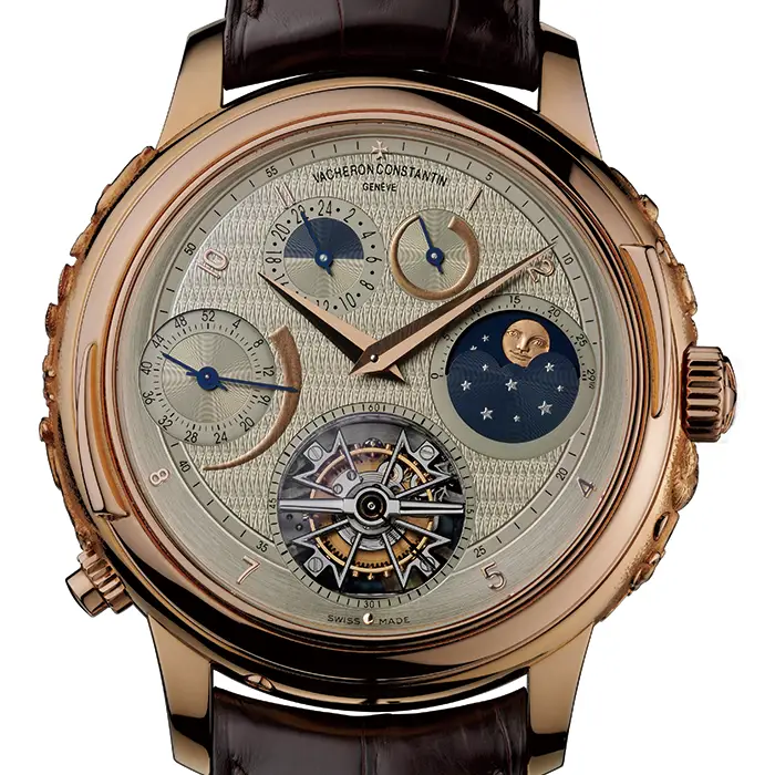 屬於埃及國王King Fouad I的高複雜功能袋表,具備三問報時、大小自鳴、追針計時、萬年曆、月相和月齡顯示,而三問報時更採用三音簧三音鎚結構。