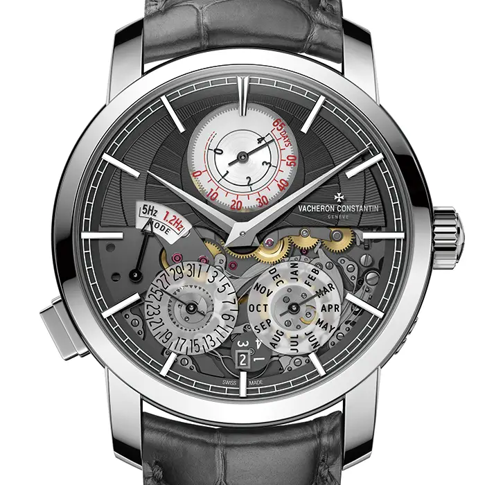 Traditionnelle Twin Beat Perpetual Calendar呈現獨特的雙頻運作模式,內置5Hz和1.2Hz兩個擺輪,前者供佩戴腕表時使用,後者則在腕表閒置時減低動力損耗,令腕表提供長達65天動力儲備。